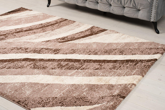 Alya Barna Bézs Modern Vonal Mintás Szőnyeg