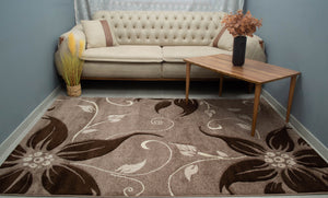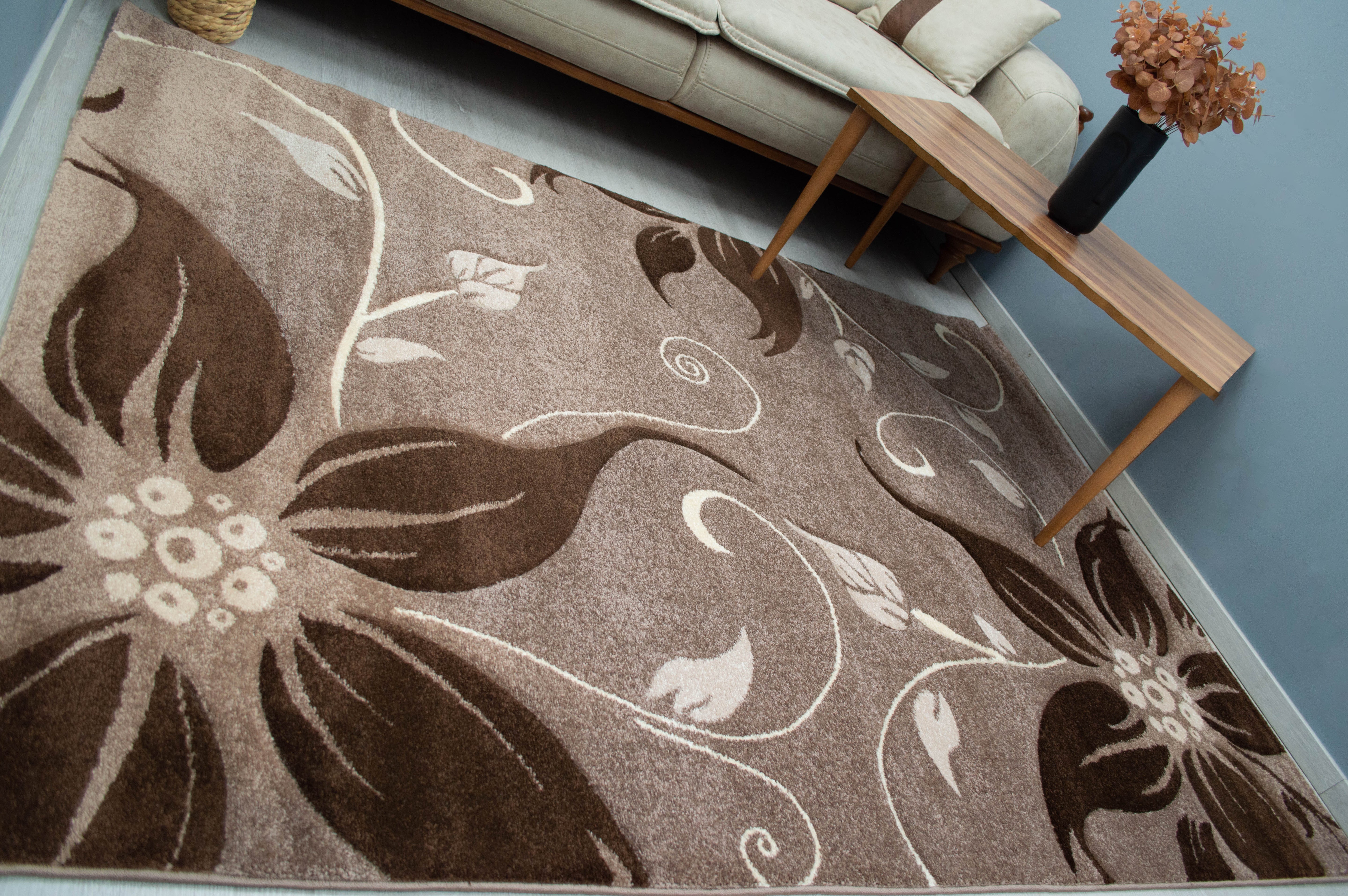 Eylül Kávé-Barna Virág Mintás Szőnyeg