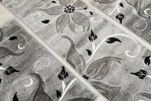 Eylül Szürke-Fekete Virág Mintás Szőnyeg Szett