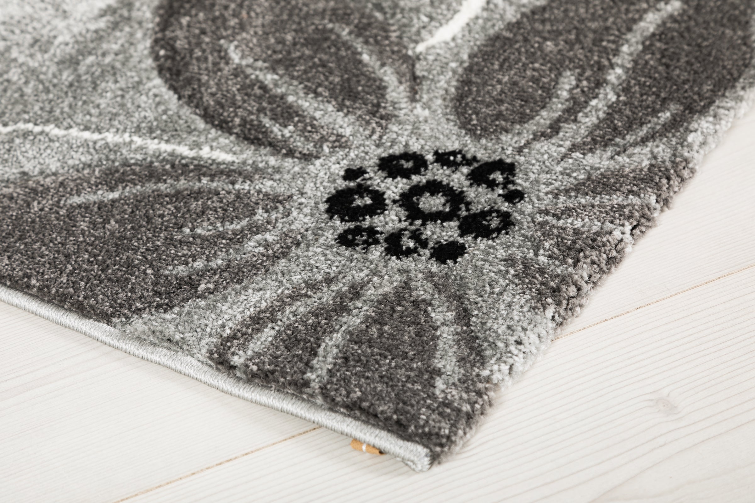 Eylül Szürke-Fekte Virág Mintás Szőnyeg