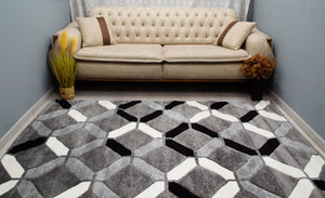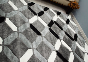 Eylül Szürke-Fekete Kocka Mintás Szőnyeg