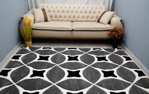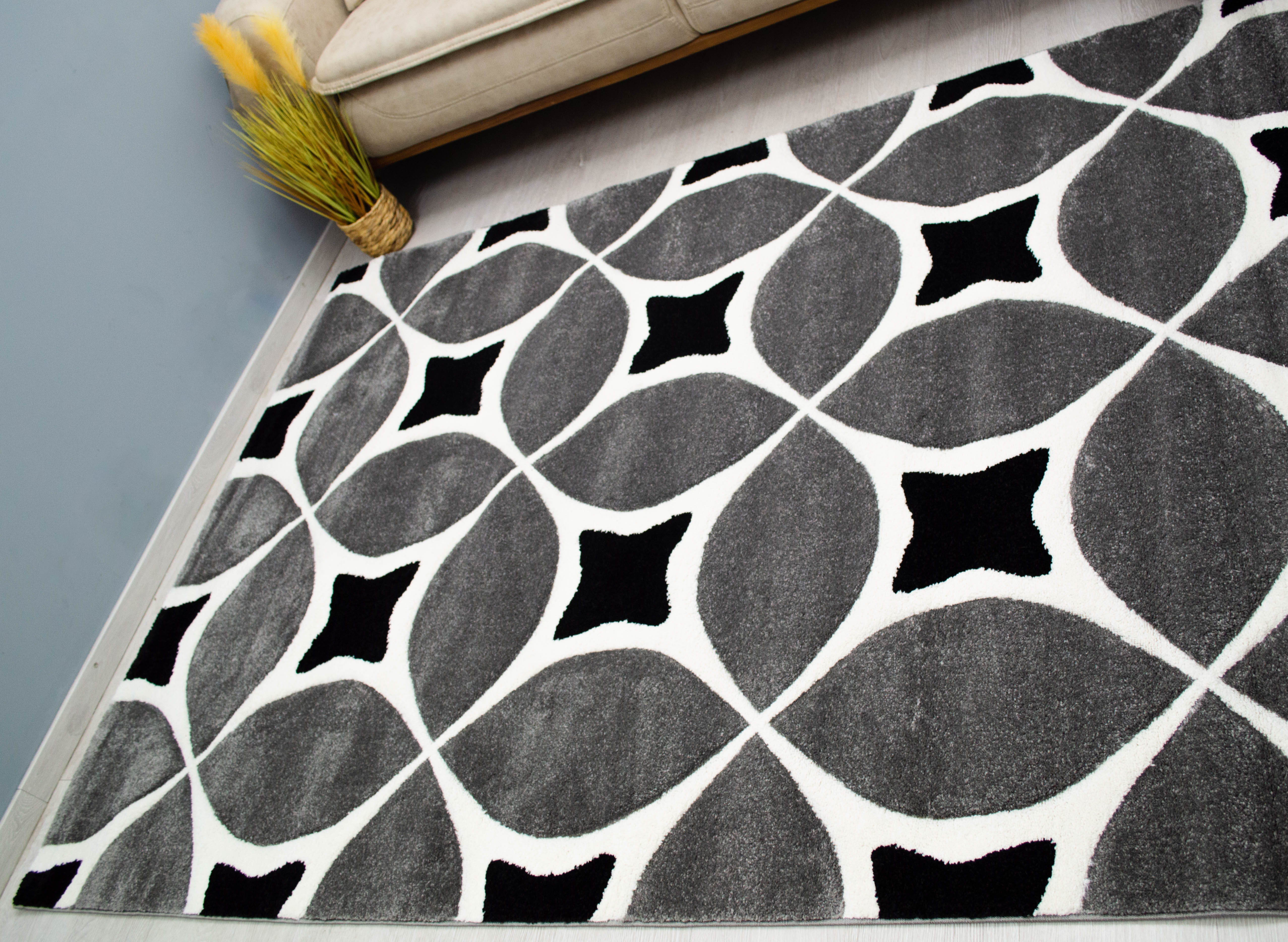 Eylül Szürke-Fekete Körkörös Mintás Szőnyeg