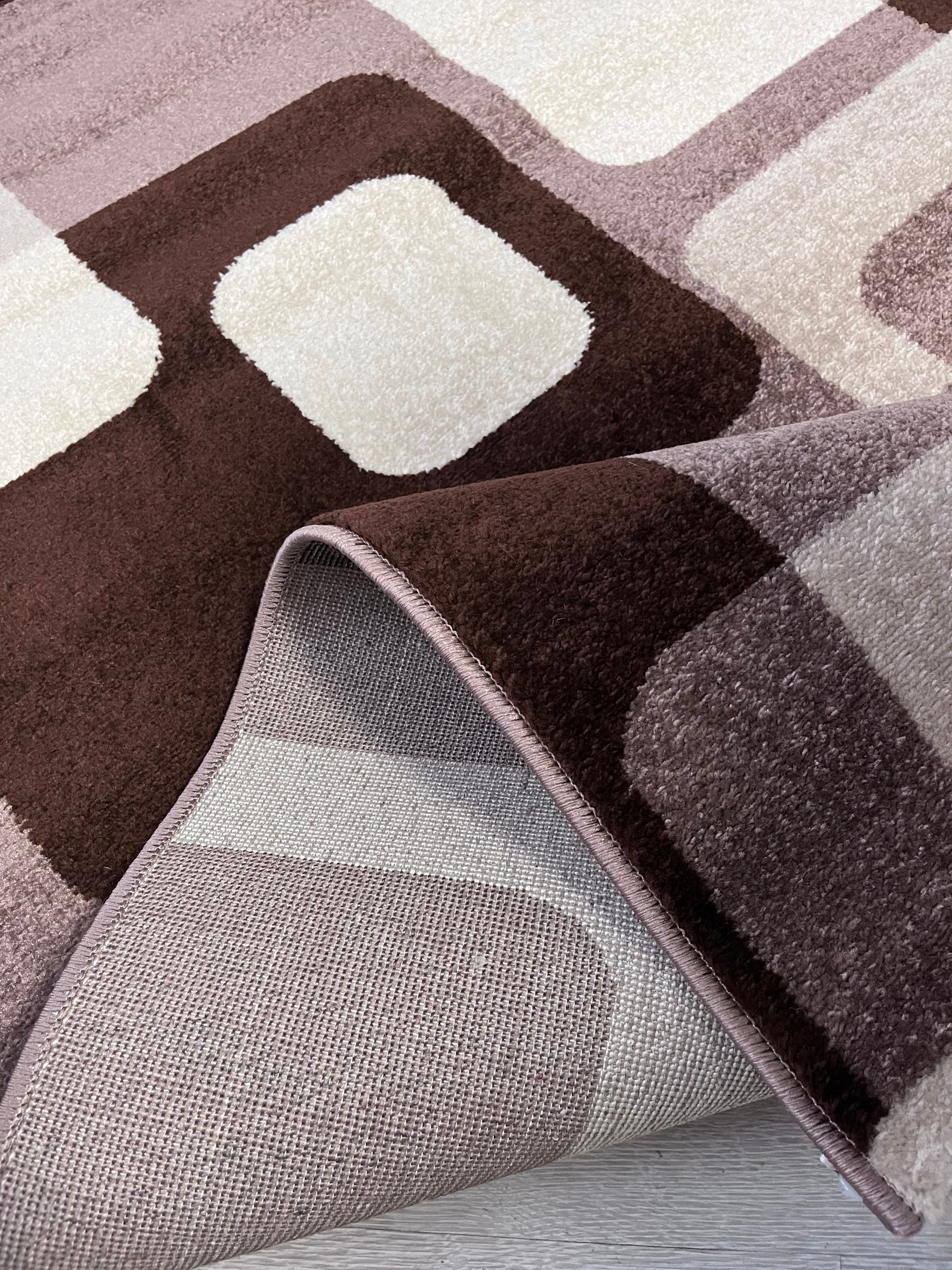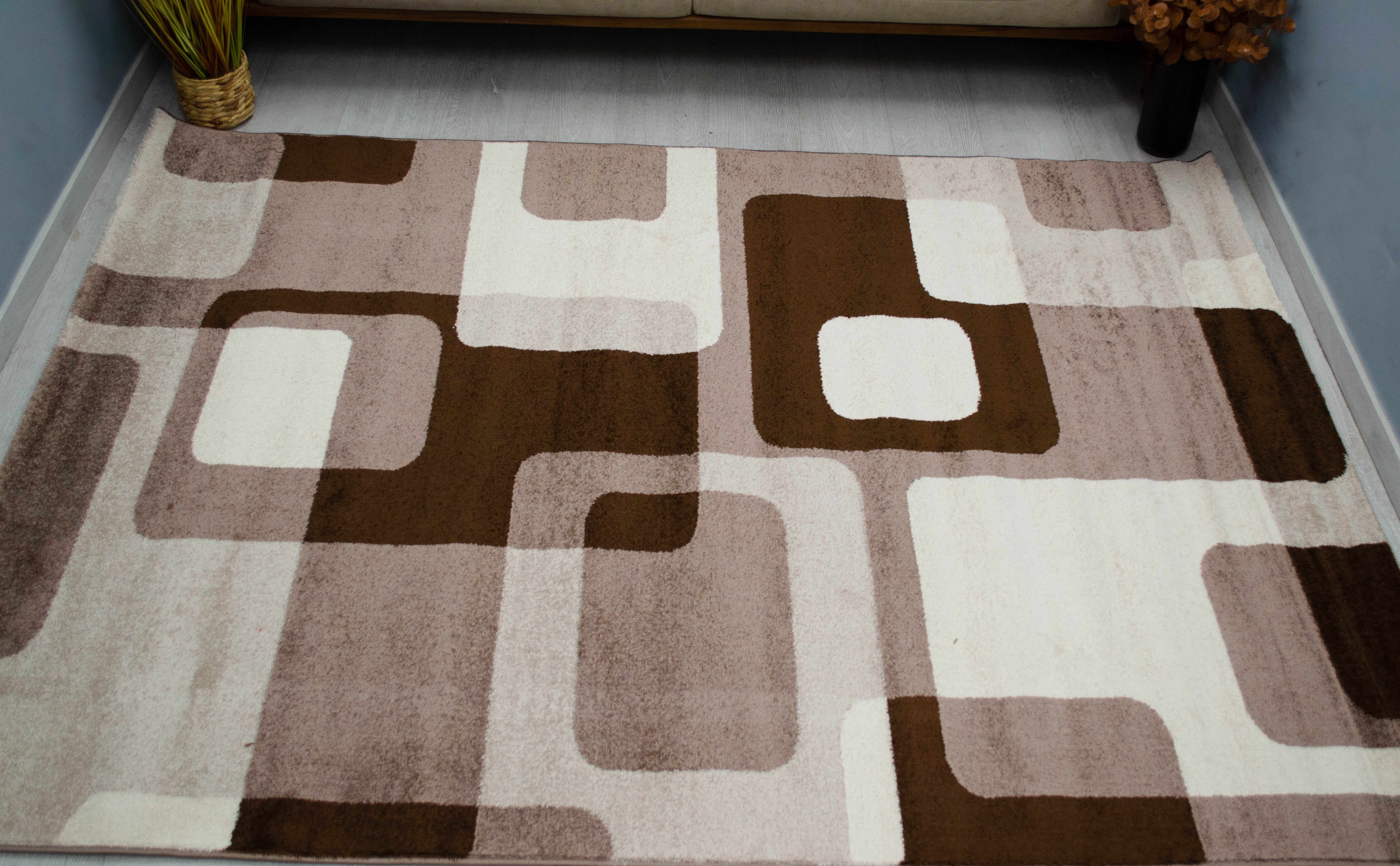 Kraly Barna-Bézs Nonfiguratív Négyzetmintás Szőnyeg